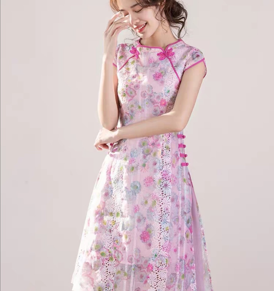 当然,旗袍也可以有甜美可爱的一面,很多女孩会不由自主地喜爱它,因为有复古又时尚的韵味。
