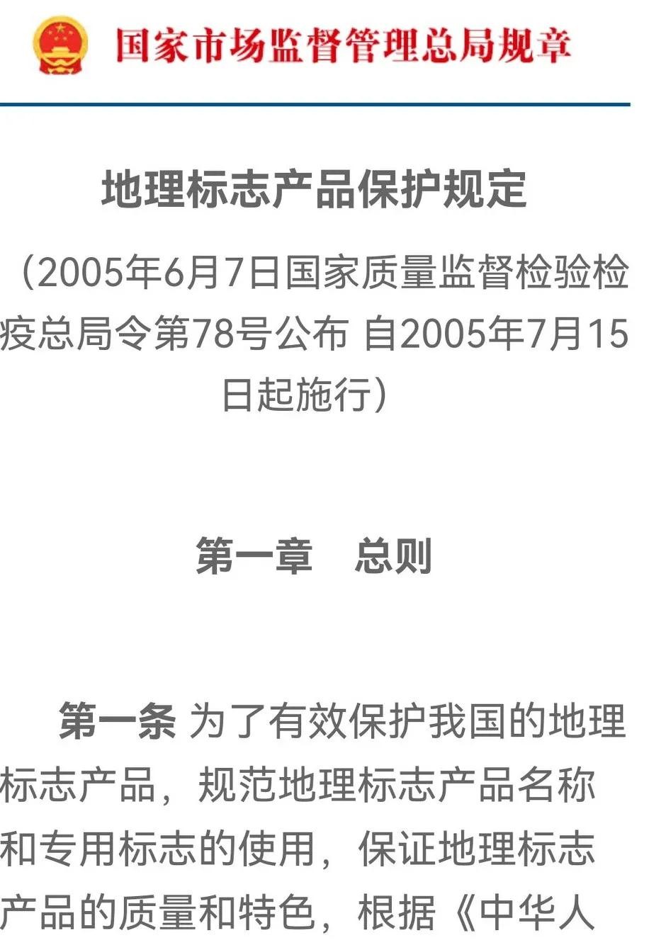 中国地理标志申报起源于1999年国家质量技术监督局通过的《原产地域产品保护规定》。2005年,根据中华人民共和国国家质量监督检验检疫总局令第78号,《地理标志保护规定》生效后,《原产地域产品保护规定》同时废止。