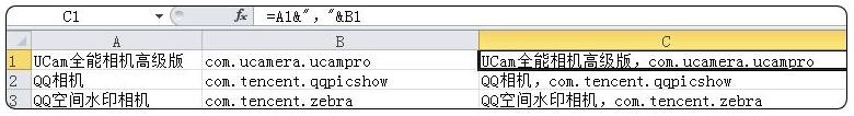 Step3 C列公式=A1&","&B1,如图1-4-42所示。