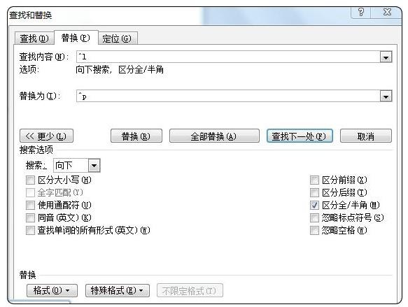 Step2 在Word中使用“替换”功能,将换行标记(光标定位到查找栏,单击高级→特殊字符→手动换行符)替换为段落标记“^p”(光标定位到替换栏,单击高级→特殊字符→段落标记),如图1-4-39所示。