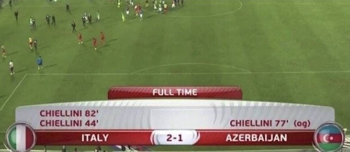 在与阿塞拜疆的比赛中,基耶利尼打入为意大利打进2球,最终2-1战胜对手。