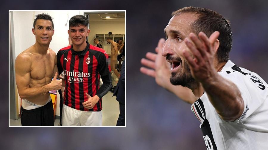 米兰小将贝拉诺瓦在与尤文图斯的比赛之后,为了与C罗合影拍照,进入到尤文图斯的更衣室。