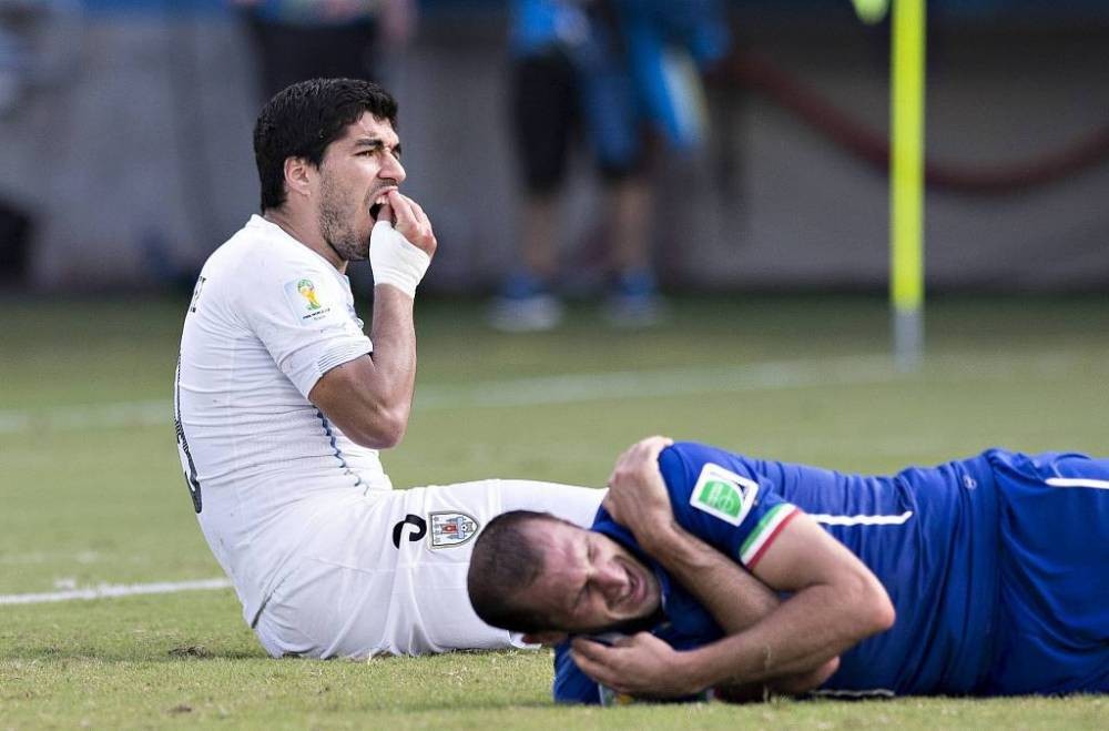 2014年巴西世界杯上,基耶利尼被苏亚雷斯咬肩膀的事情成为当时的焦点。