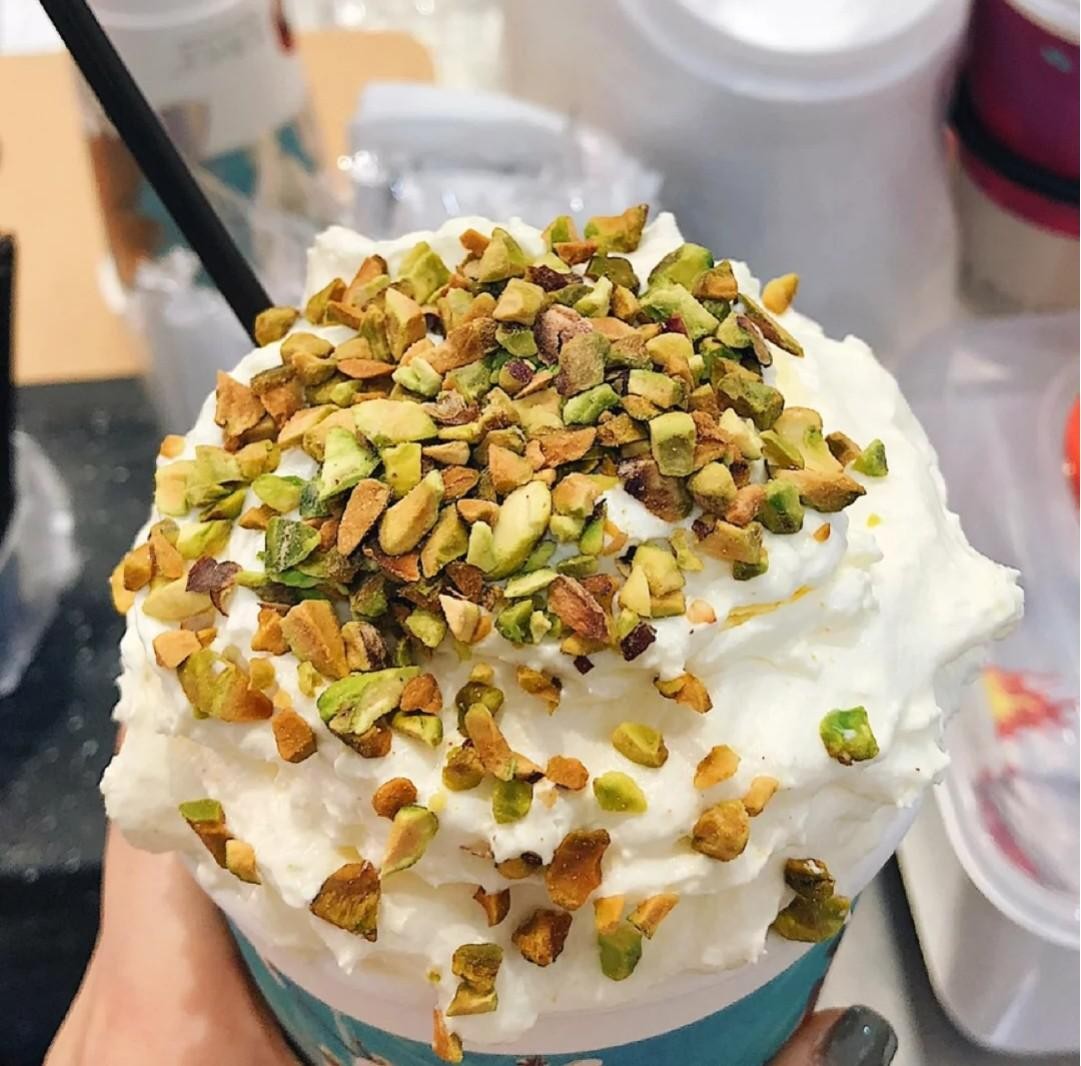 人间烟火光听名字就赢了,颜值也是爆表的一款,小仙女必点!乌龙茶底+鲜奶+奶油+开心果,喜欢茶味比较浓的小伙伴们可以选择这一款哦!