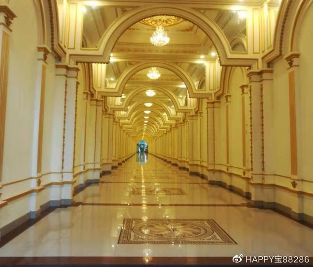看到装潢设计豪华别致,感叹富人有钱就是好呀!呆了10几分钟就下来了,在楼下集合等同行人,用手机对金色的建筑物拍了一张无人照,
