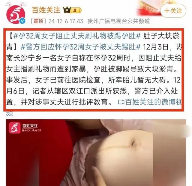 因看不惯丈夫给女主播刷礼物,32周孕妇遭丈夫猛踢肚子