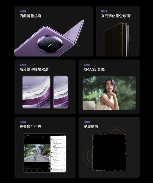 华为在折叠屏市场中拥有着绝对的领先优势。它通过多年的技术创新和探索,真正解决了折叠屏手机的“大屏”与“轻薄”之间的矛盾。上一代的华为Mate X3不仅上市秒售罄,更在2023第二季度国内折叠屏出货量数据报告中夺得单季度销量冠军。这些数据都证明,消费者对于折叠屏手机最关注的就是轻薄、耐用、全能这三个方面,也是折叠屏手机未来的发展趋势。而这些特点,在新的Mate X5上不仅延续更加升级。