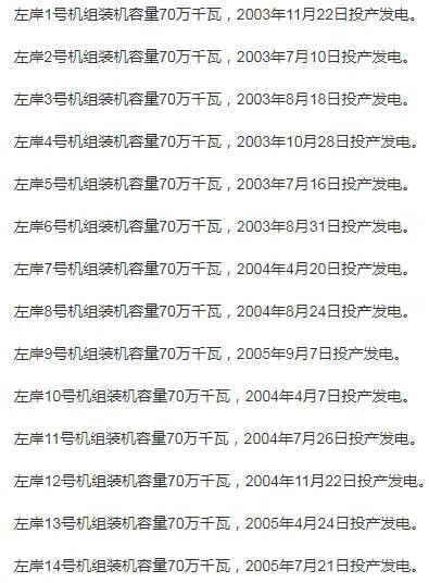 左岸机组情况