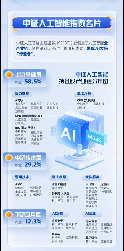 指数简介:中证人工智能主题指数选取为人工智能提供基础资源、技术以及应用支持的公司中选取代表性公司作为样本股,反映人工智能主题公司的整体表现。