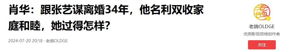 信源:2024-07-20 20:18·老鸽OLDGE 《肖华:跟张艺谋离婚34年,他名利双收家庭和睦,她过得怎样?》