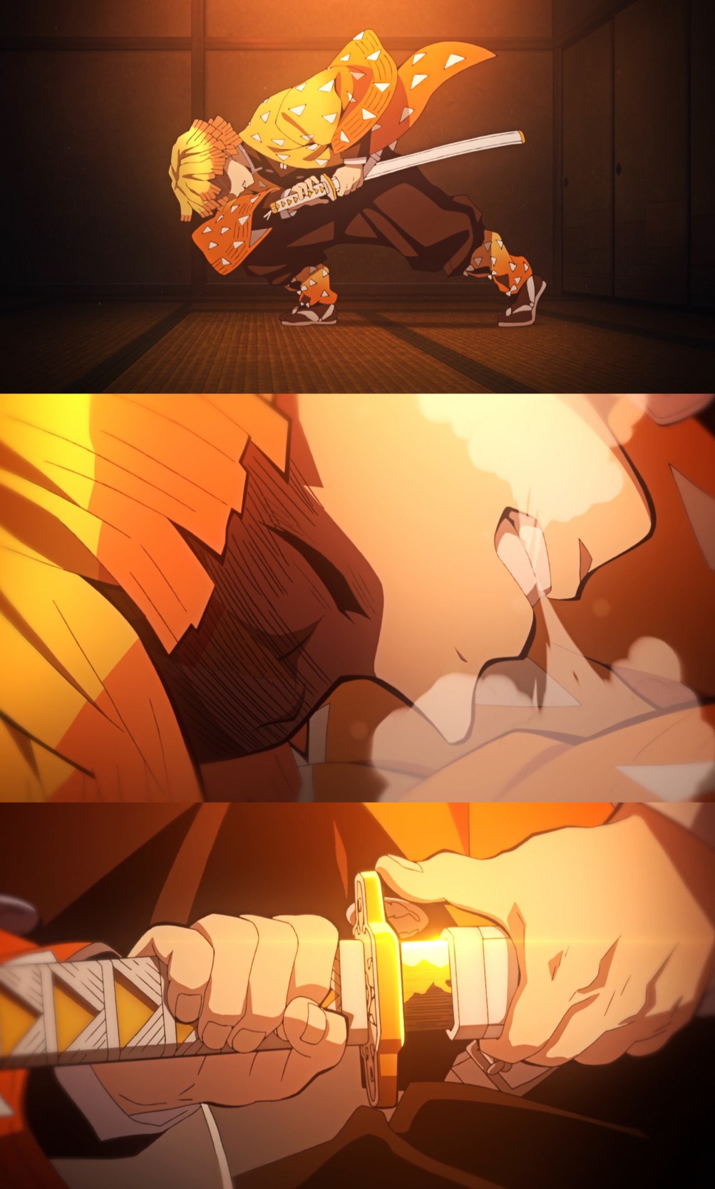 但是即便只会一招,善逸的勤学苦练,还是把这招玩出了花,在霹雳一闪的基础上,创造了六连、八连和神速这三个招式。并且还自创了雷之呼吸柒之型——火雷神,就是用这招单挑了变成鬼的师兄,也就是后来的上弦六。