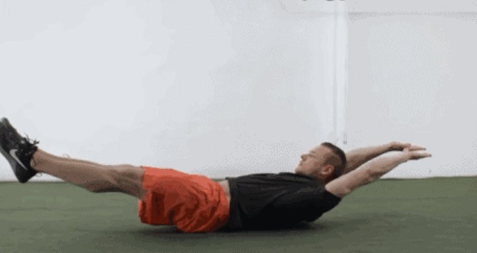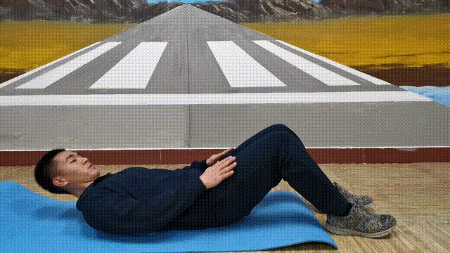仰卧于垫上,双腿屈膝成45度,双手交叉放在胸前或贴近耳侧。收缩腹部,双腿和头部同时向腹部靠拢收紧。在双腿和头部靠的最近的时候停留1s,然后回到初始位置,在肩膀和脚着地的时候停止,注意头部不要着地。