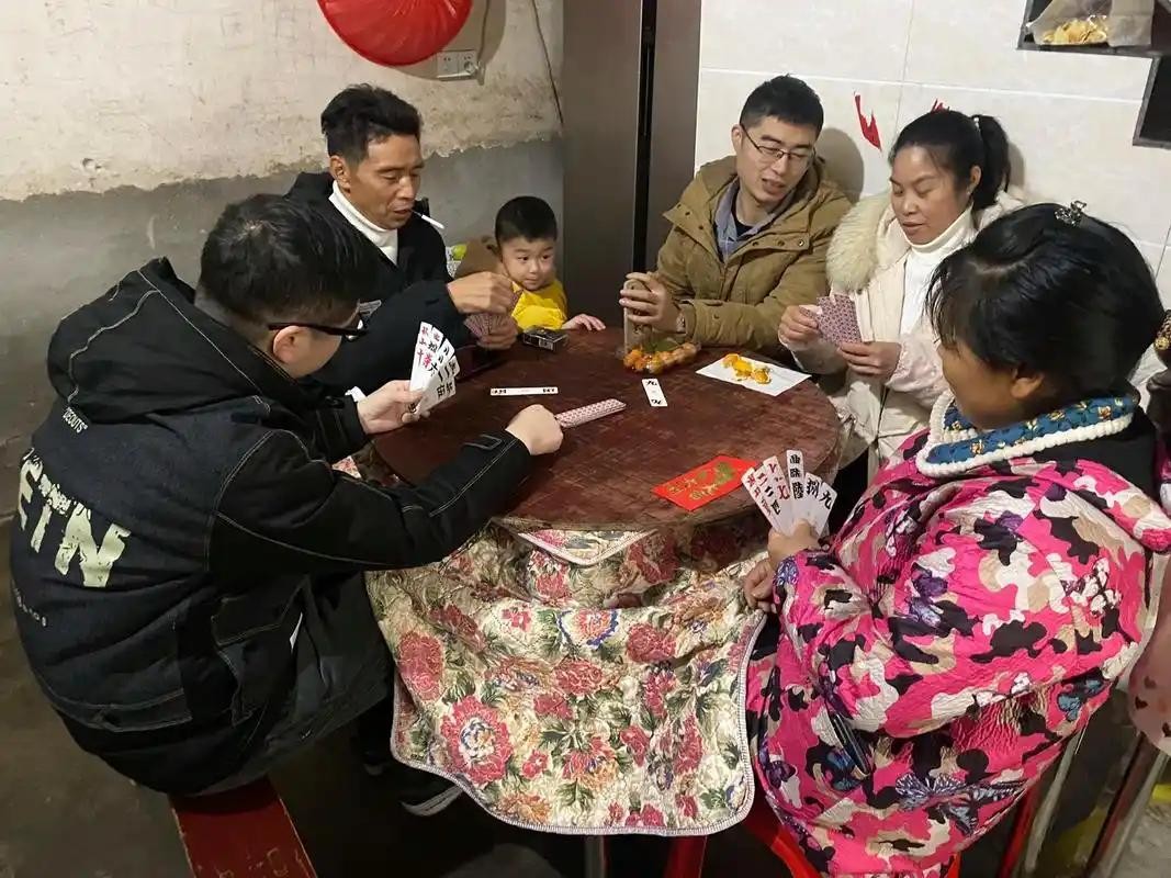 到了过春节的时候,在外打工的年轻人了都回家了,这个时候是最热闹的,那些邻居,亲戚朋友,以前的一些发小,围在一起就开始打牌,斗地主,斗金花,打上下游,还有字牌,有时家里人多的,开几场,一桌就四个人来打,一般也都是打着玩的。当然,也有打钱的,有输赢的。