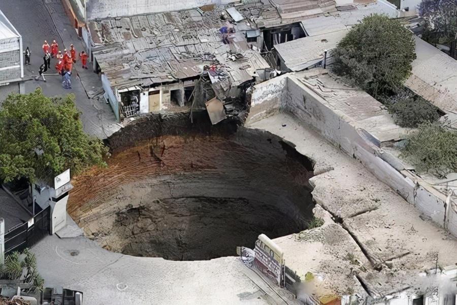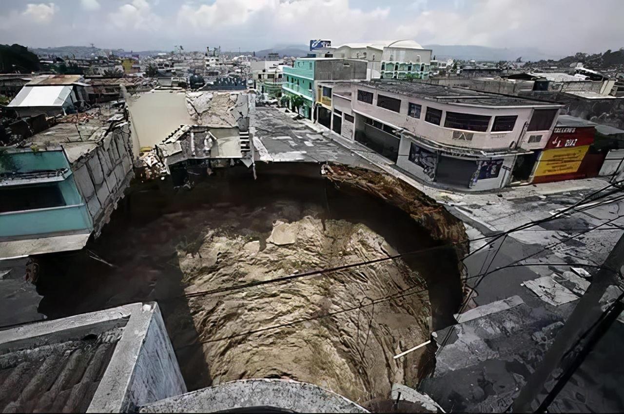 同年,一天凌晨城区突然出现了一个直径70米,深100米的巨坑,不幸的是一对兄妹在里面遇难了,周围二十余间房子接连下陷,当时官方紧急封锁了周边500米。这件事没过几年,在10年5月31日的时候,首都危地马拉城又出现了一个深约100米的巨坑,当时与地面一起陷下去的还有一栋3层楼的房子。