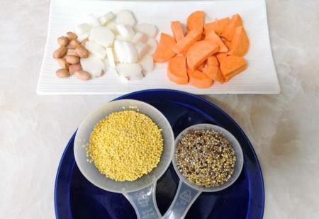 第3步:先将黄米和藜麦煮5分钟,再加入花生、红薯和山药继续煮10分钟,关火焖5分钟,就可以享用了。