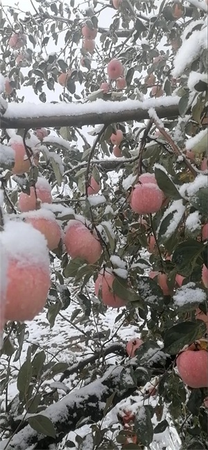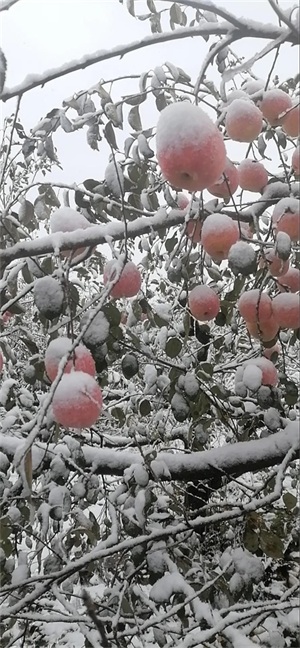 栖霞蛇窝泊,红红的苹果上白雪皑皑
