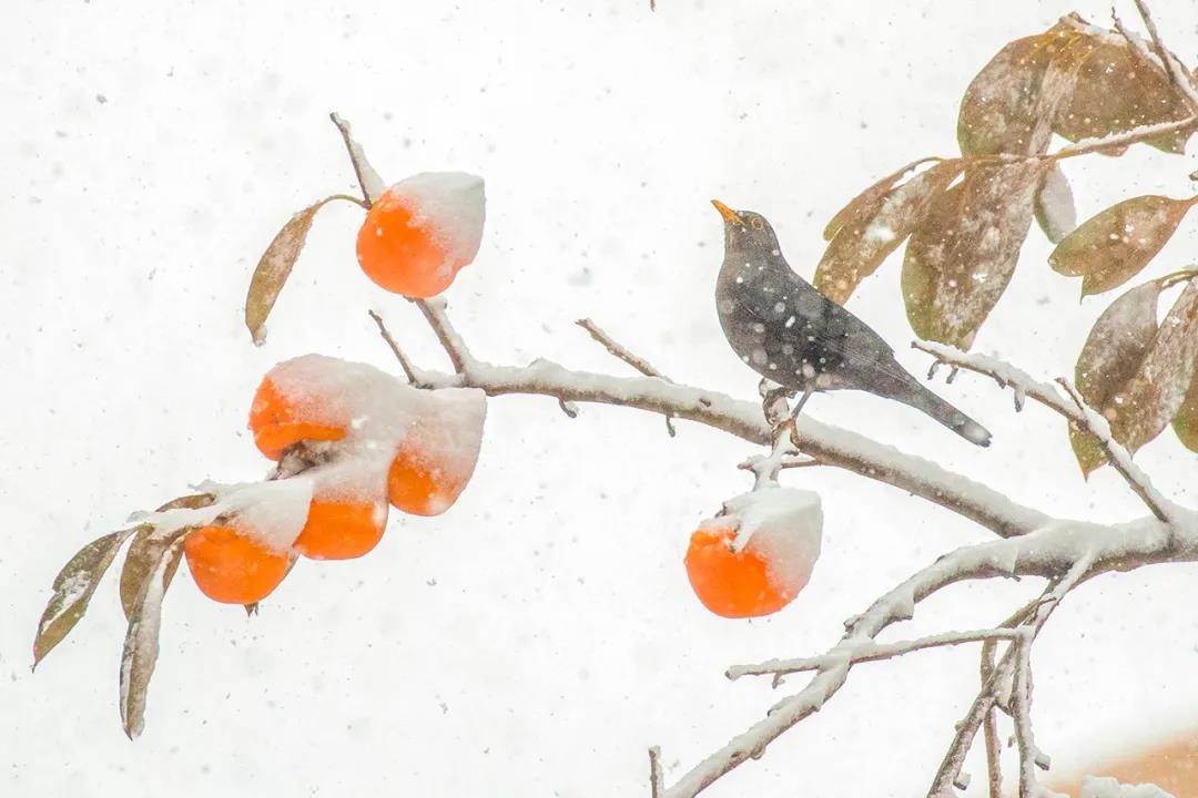 雪中乌鸫鸟 拍摄者:乔光先