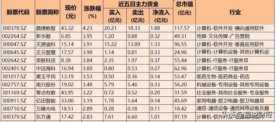 鼎捷数智(工业软件+数字工厂龙头)、新华都、天源迪科(电信+公安软件龙头)、正元智慧、荣联科技、中远海科(智慧航运+智能交通龙头)、漱玉平民、南兴股份(板式家具机械+云计算)、零点有数、亿田智能(集成灶+燃气灶龙头)、万隆光电、东方通(中间件+信创龙头)