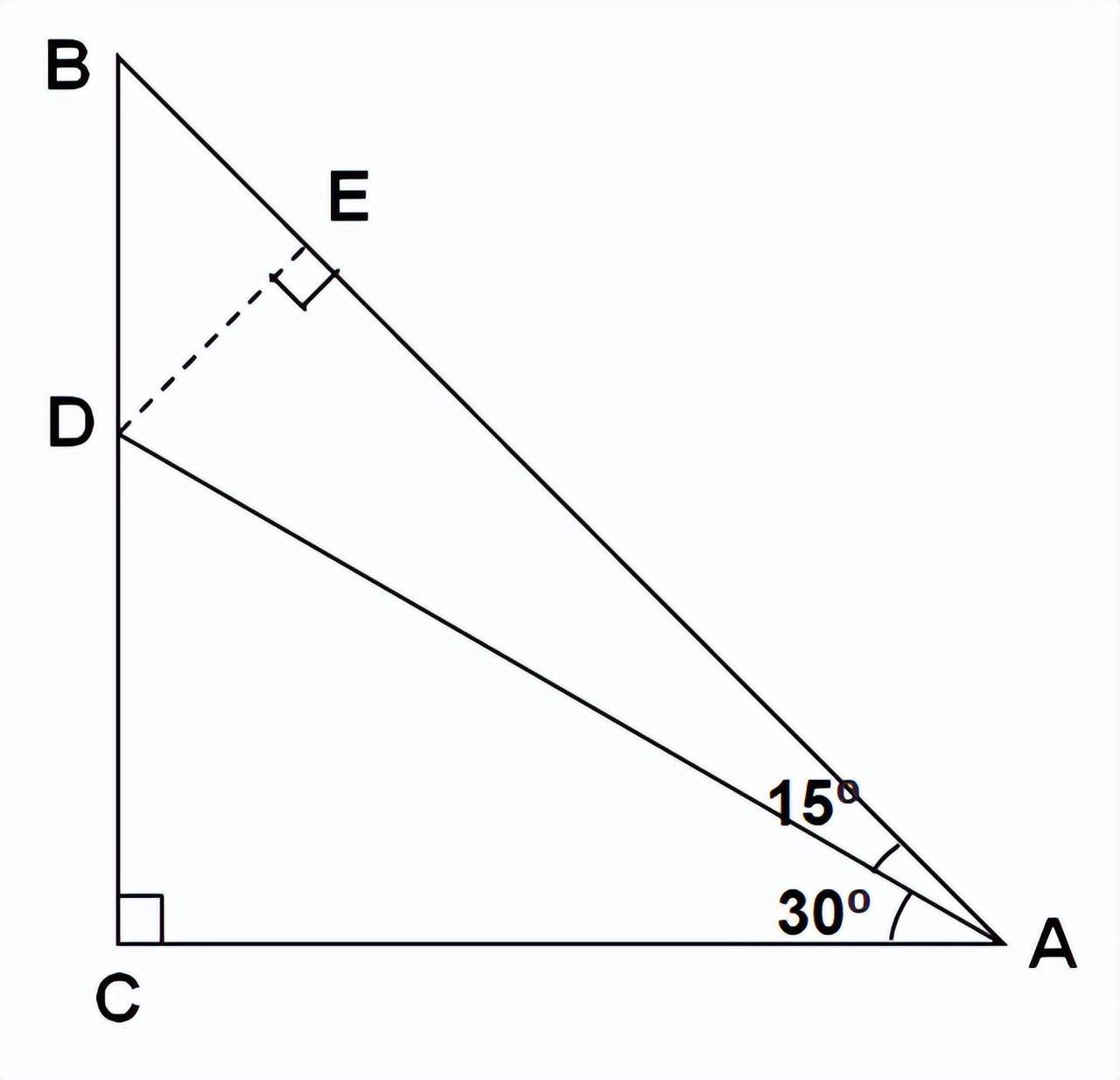 设CD=1, 就有AC=根号3,AD=2,DB=BC-CD=根号3-1,DE=BD/根号2=(根号6-根号2)/2.因此sin15度=DE/AD=(根号6-根号2)/4.