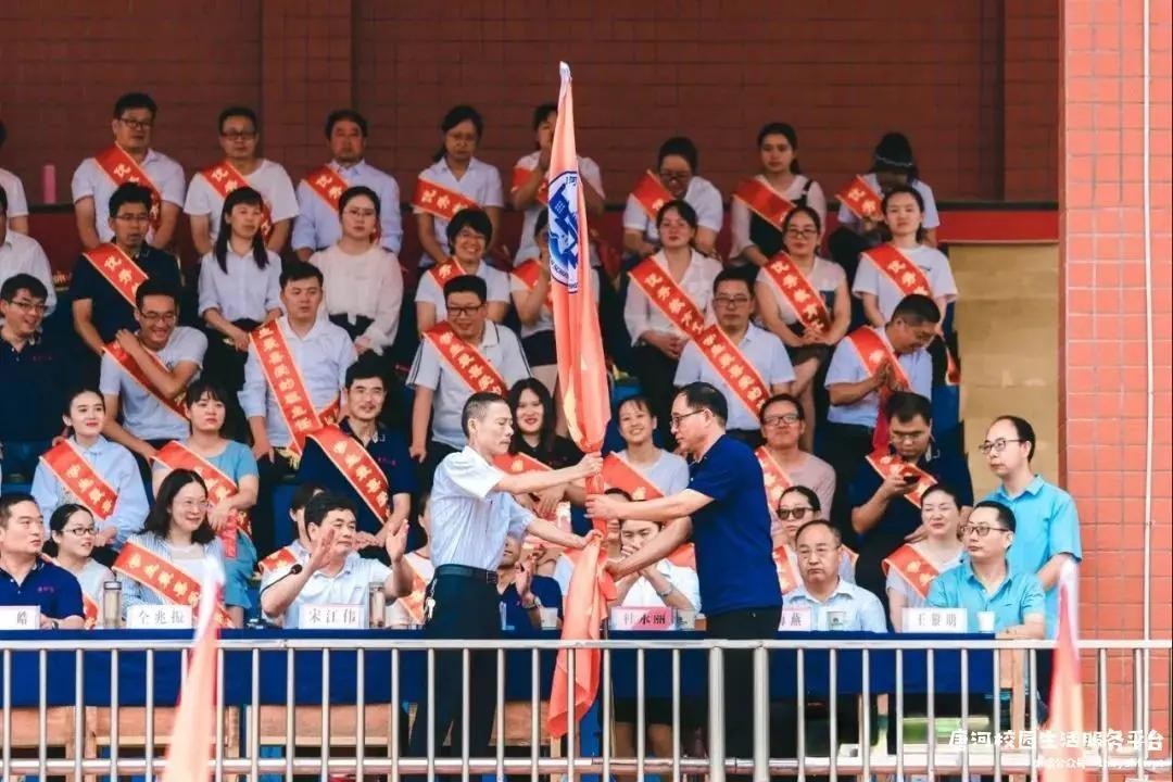 仝校长授高三战队战旗