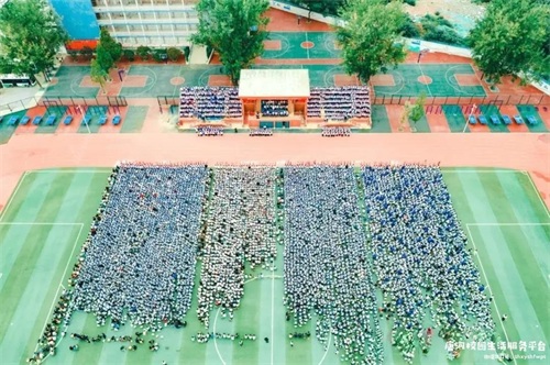唐河一高西校区高中部及初中部全体师生整装待发、共赴盛会,共同见证这一光荣的历史时刻。