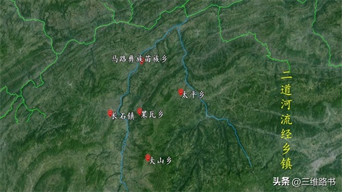 6.二道河流域,主要流经了大山乡,长石镇,果瓦乡,太平乡,马路彝族苗族乡,二道河河长75公里,流域面积1134平方公里。