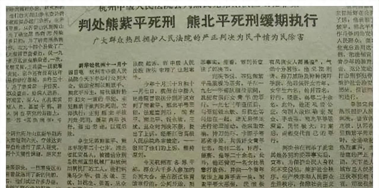 熊北平和熊紫平,兄弟两人,在1979年11月14日的公审大会上受审。他们被带上审判台,审判长当场宣读了审判书。熊紫平被判处死刑立即执行,而熊北平则被判处死刑缓期两年执行。