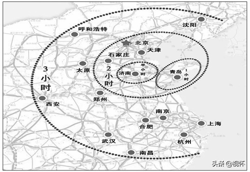 山东省高速铁路网“1、2、3小时”交通圈时效示意图