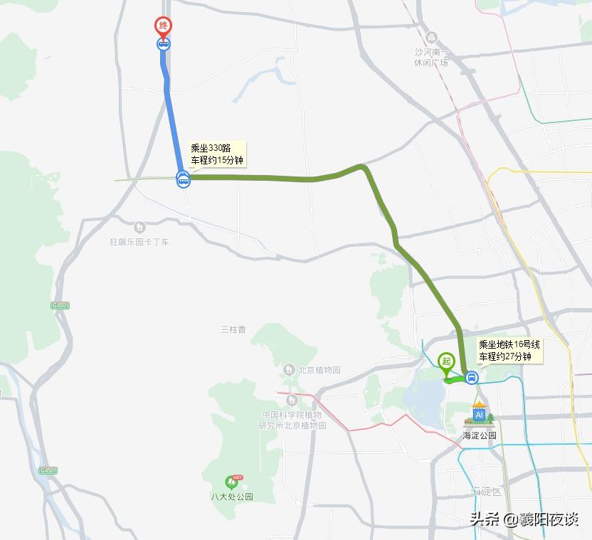 从上图我们可以很明显地看出,330的老线路根本就不经过香山,更不要说发生后续的故事。