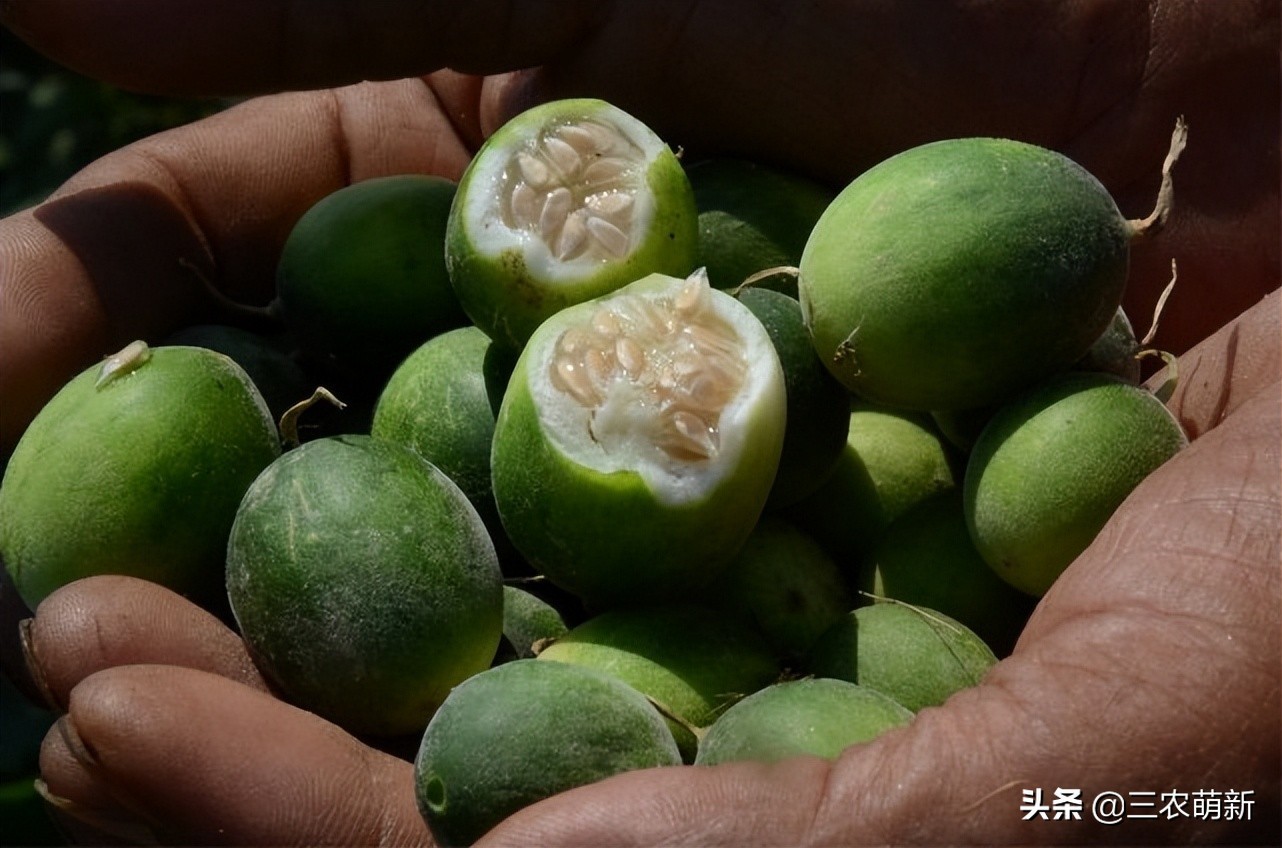 马泡瓜的个头非常小,而且是成串生长的,这样也有便于农民伯伯采摘。马泡瓜在我国只有少量的人工种植,而且也不是为了吃,而是为了对马泡瓜进行营养价值的研究和分析,通过研究出来的营养成分,可以用来制作女性化妆品和一些科研研究。