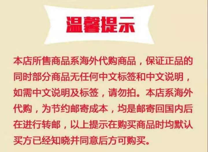 为了打消顾客的疑虑,二人在商品介绍页面作出“温馨提示”:本店所售商品系海外代购商品,保证正品的同时部分商品无任何中文标签和中文说明。