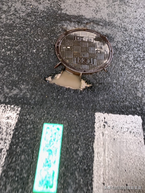然而,在南京东路上居然有一个坑,这个“坑”不是套路,而是实实在在的坑,就在去到华为的人行道边的井盖旁。虽然在人行道外,然而这里人流量比较大,在避让对向行人的时候稍不注意就会有人踩进去,从这里来回都看到有人不小心踩到坑里。