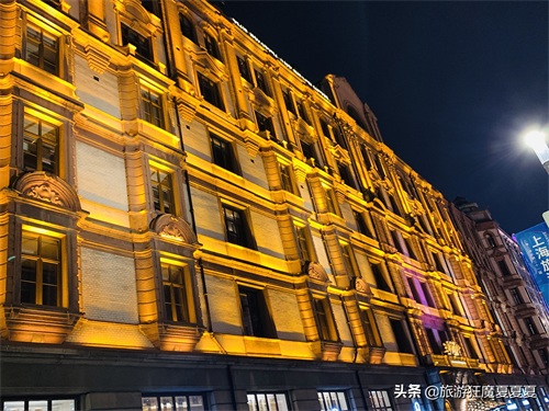 顺着南京东路的话,可以路过和平饭店,这是我最喜欢的酒店之一,只不过现在已经属于费尔蒙旗下了。相信这个酒店不用我多说,无论你知不知道他的历史,也熟悉这个名字,1995年周润发主演过同名电影,陈奕迅也唱过同名歌曲,路边打卡留念的游客众多,对面墙上还有灯光秀,整个酒店灯光外墙会根据音乐的变化而变化,不知道大家发现没有。
