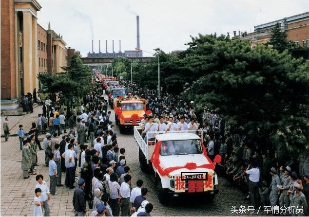 1986年7月15日,解放CA141型载货车批量试生产成功,向全场职工报捷。
