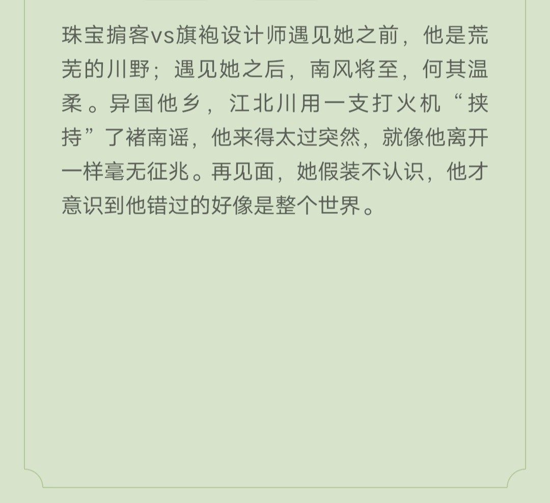 文案:异国他乡,褚南谣救下了身受重伤的江北川。她以为他们是初见。