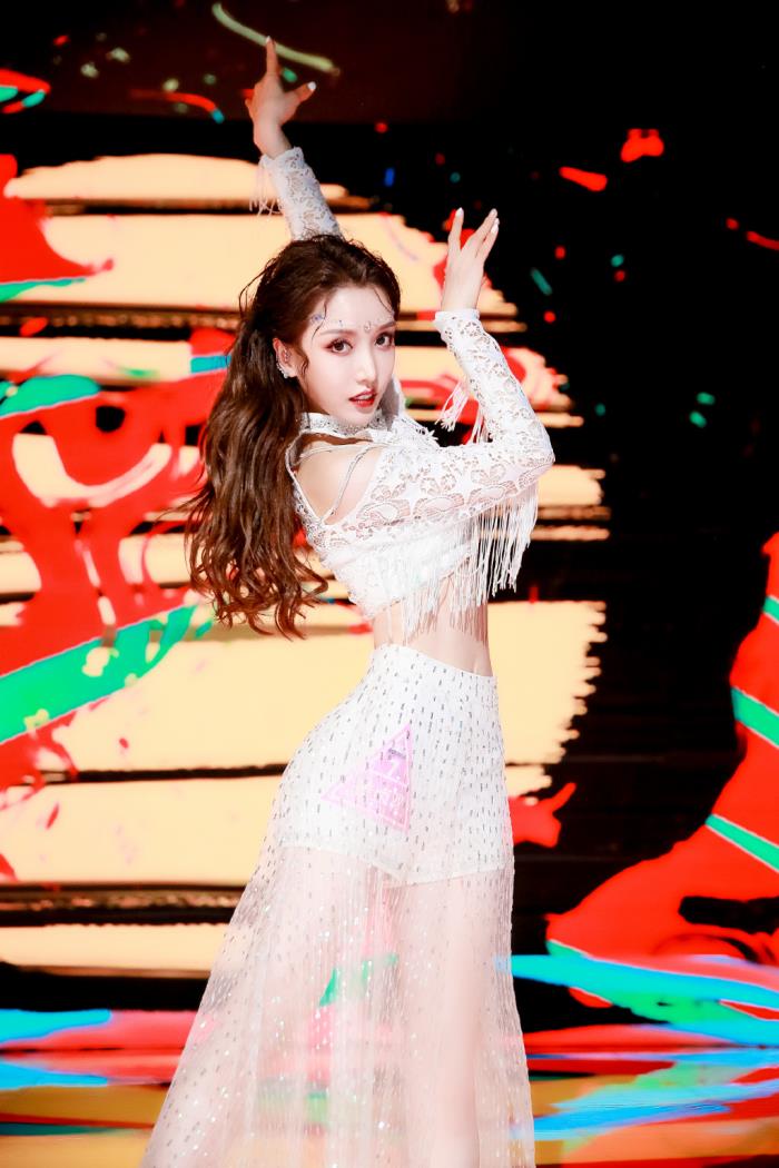 第二轮公演她选的是舞蹈位置的测评,跳了一支非常有难度的舞蹈,各种下腰甩头发,但她的妆发造型惊艳到了不少观众,最终她也夺得了《时候》舞台的撑腰王。