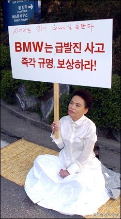 在该汽车公司前静坐示威的金秀美