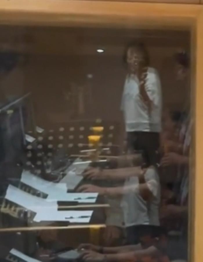 除了施安妮,录音棚玻璃上还反射出一个短发白衣女子的身影,她应该就是视频的拍摄者。