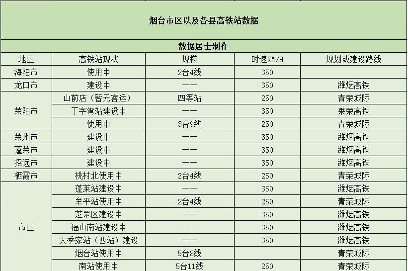烟台市——将拥有16个高铁站,已经开通6个高铁站,9个在建设中