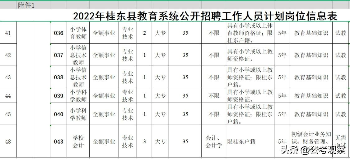 如桂东县教育系统公开招聘工作人员中,大专学历能报考其中的小学教师以及学校会计。