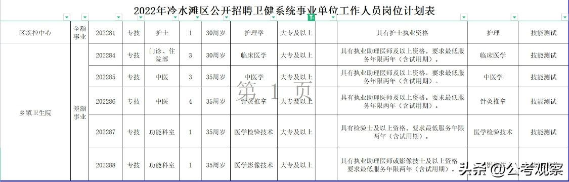 如以下永州市卫健系统事业单位招录岗位计划表:
