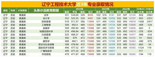 辽宁工程技术大学2024至2022年(辽宁)各专业录取分对比情况!