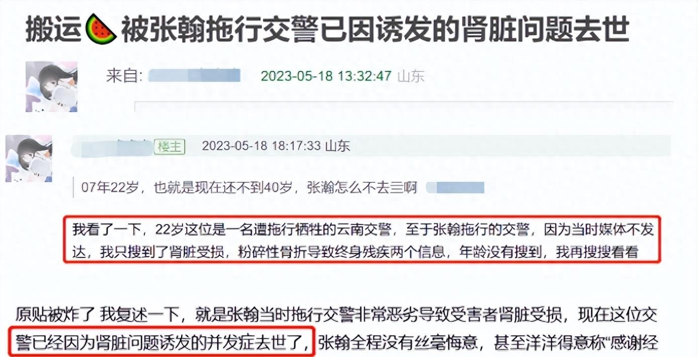 网曝张翰拖行交警已去世,网友发帖却被删,心虚!罪名坐实?