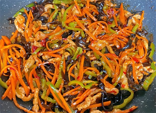 食材:肉丝➕木耳➕青椒➕胡萝卜