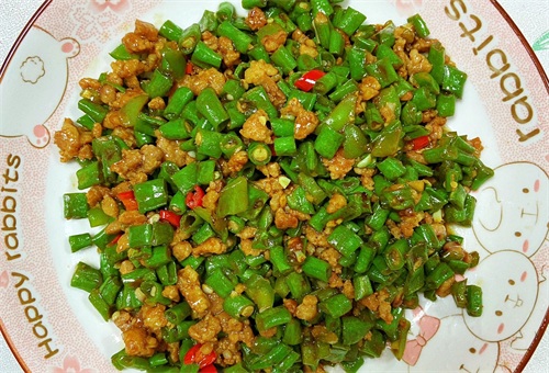 食材:豆角➕肉末➕青椒丁➕小米辣➕蒜末