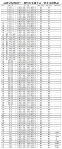 菏泽学院2020年公费师范生分专业分地市录取情况