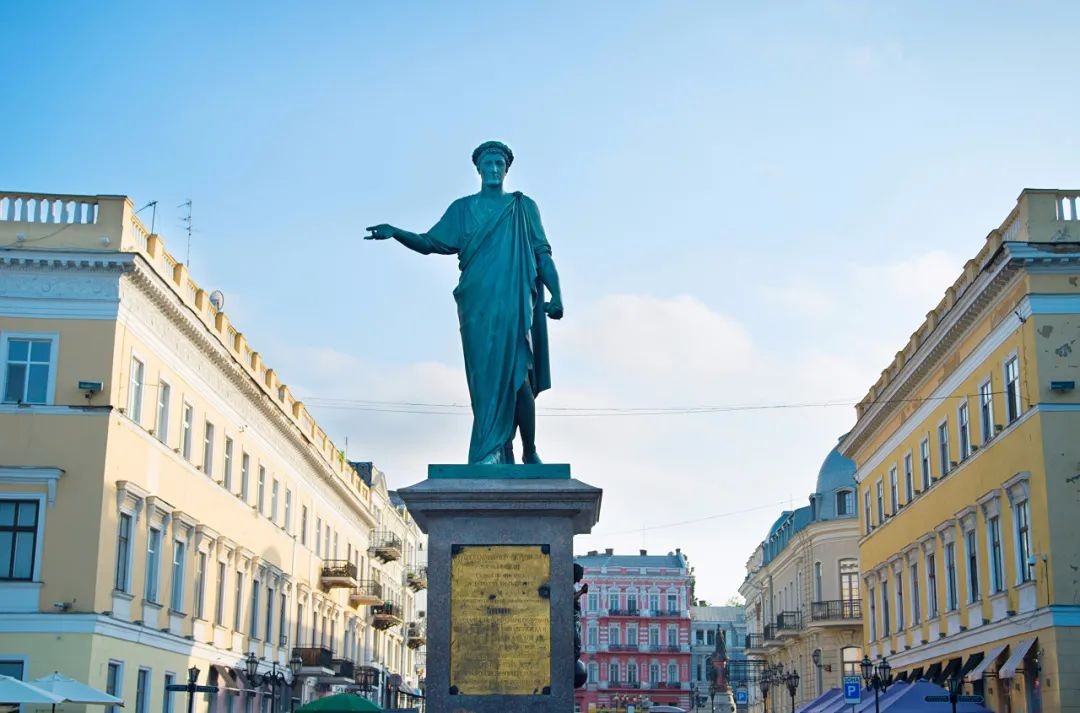 广场中心的那尊雕像,属于敖德萨城市创始人之一的黎塞留公爵。