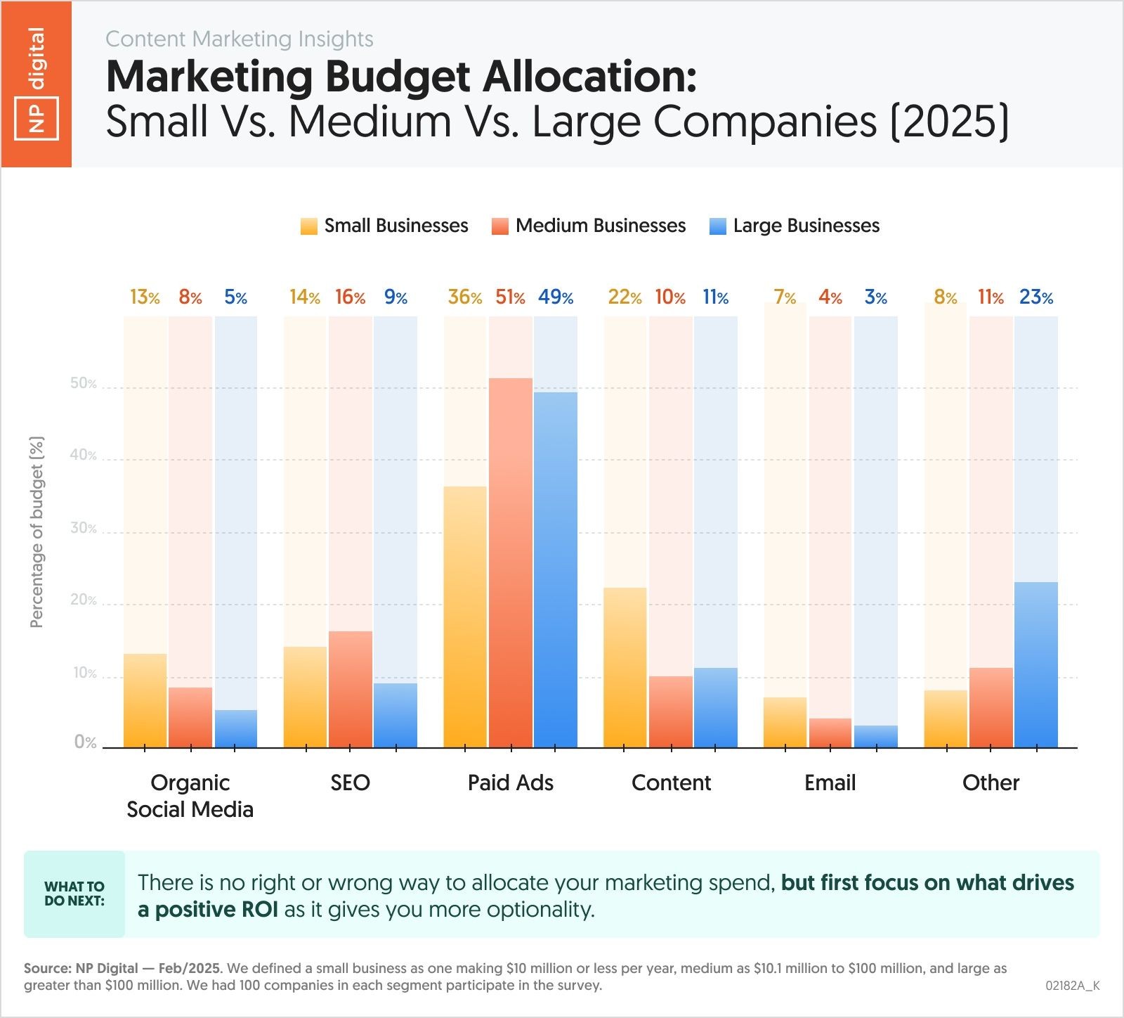 4. 企业的所有大小分配了大多数预算付费的广告。 小型企业分配的36%的预算,企业分配的51%,和大型企业分配占49%。 内容营销和搜索引擎列第二。 ( NP数字 )