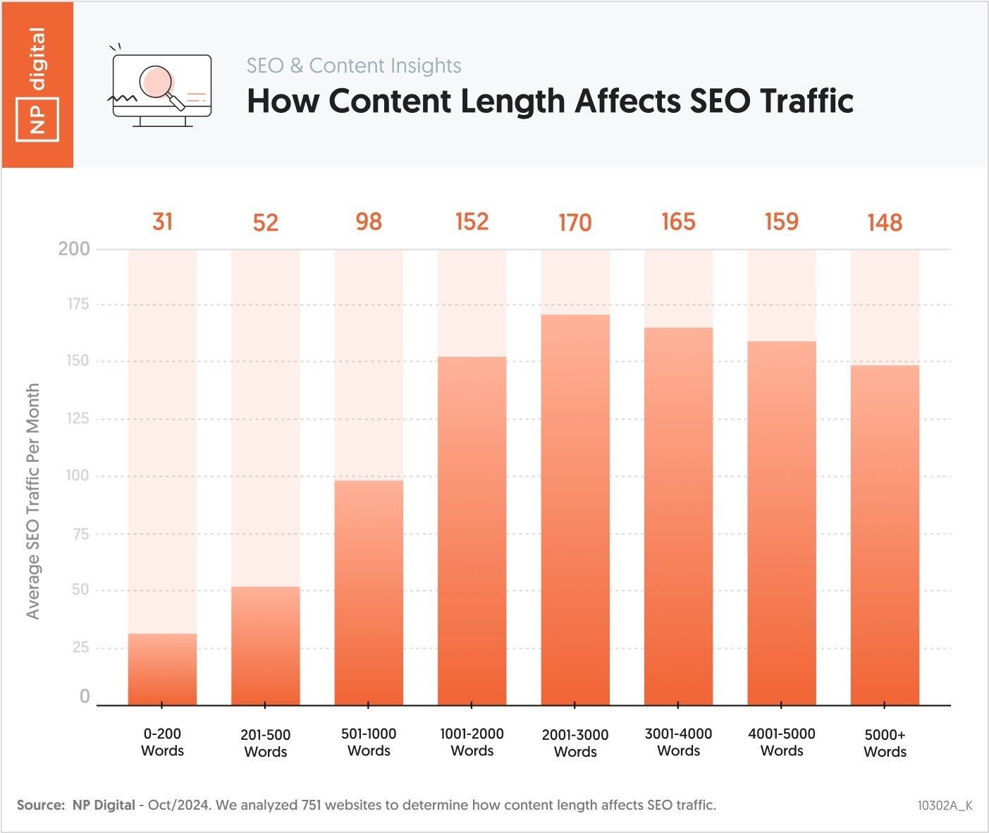 14. 理想的内容长短的搜索引擎优化有所下降。 内容与至少1,000个的话吸引了大多数SEO业务量和内容与少于1000个词驱动显着减少。 ( NP数字 )