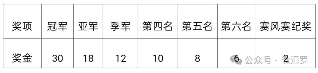 (一)大赛组委会对总成绩排名前6名的队伍分别颁发奖杯、证书和奖金,并对除总成绩前6名以外的队伍设立赛风赛纪奖。在比赛期间,服从组委会安排,无违规违纪情况且全程参加完比赛的队伍可获得全额赛风赛纪奖。